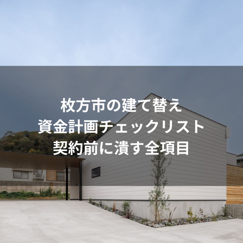 はじめに|「チェックリスト化」できた人だけが予算オーバーしない 建て替えの資金計画は、知識量より抜け漏れゼロが勝ちです。 枚方市は住宅地として人気がある一方で、建て替え現場は「前面道路が狭い」「隣家が近い」「外構が大きい」など条件差が出やすく、同じ30坪でも費用がズレます。 そこで⑤では、契約前に潰すべき項目を...