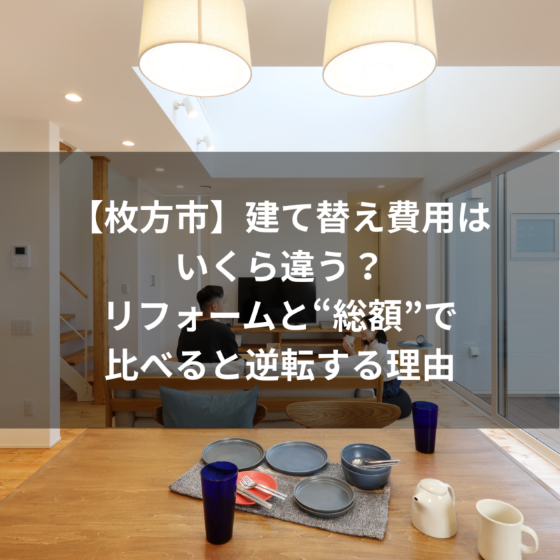思考時間: 27s 【枚方市】建て替え費用はいくら違う?リフォームと“総額”で比べると逆転する理由
