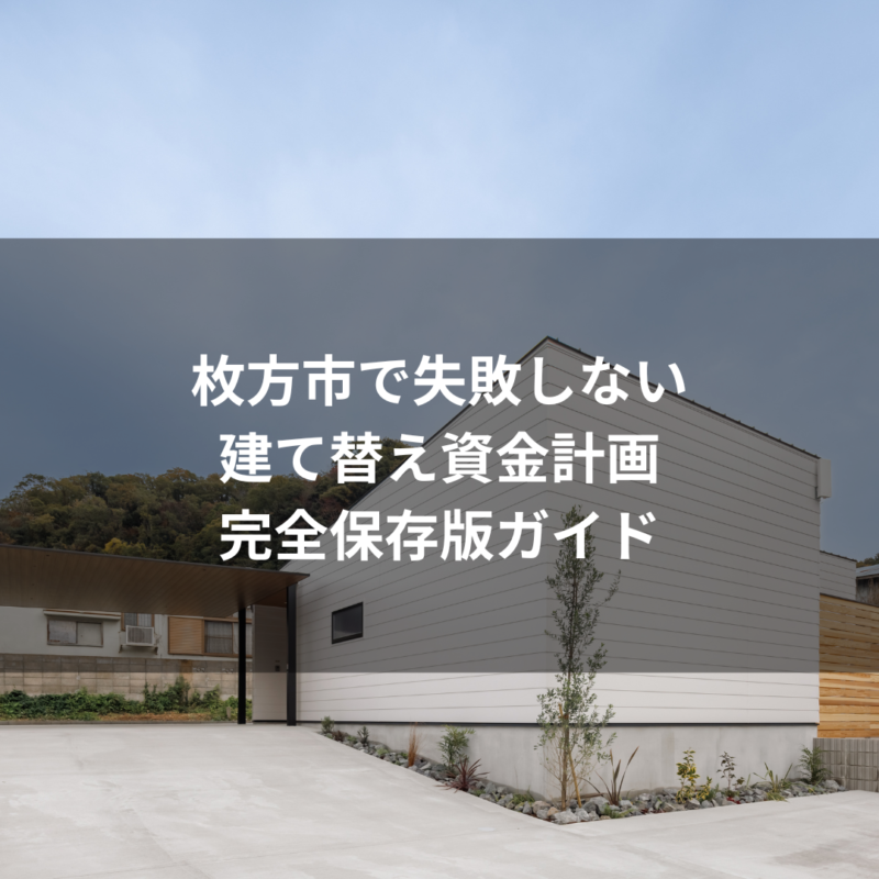 はじめに|「建て替え」は資金計画で9割決まる 枚方市で建て替えを検討する方の多くが、最初につまずくのが「いくらかかるのか分からない」という不安です。 なぜなら建て替えは、新築+解体+仮住まい+各種諸費用が同時に発生する、非常に複雑な資金構造を持っているからです。 本記事では、枚方市で実際に建て替えを行うケースを...