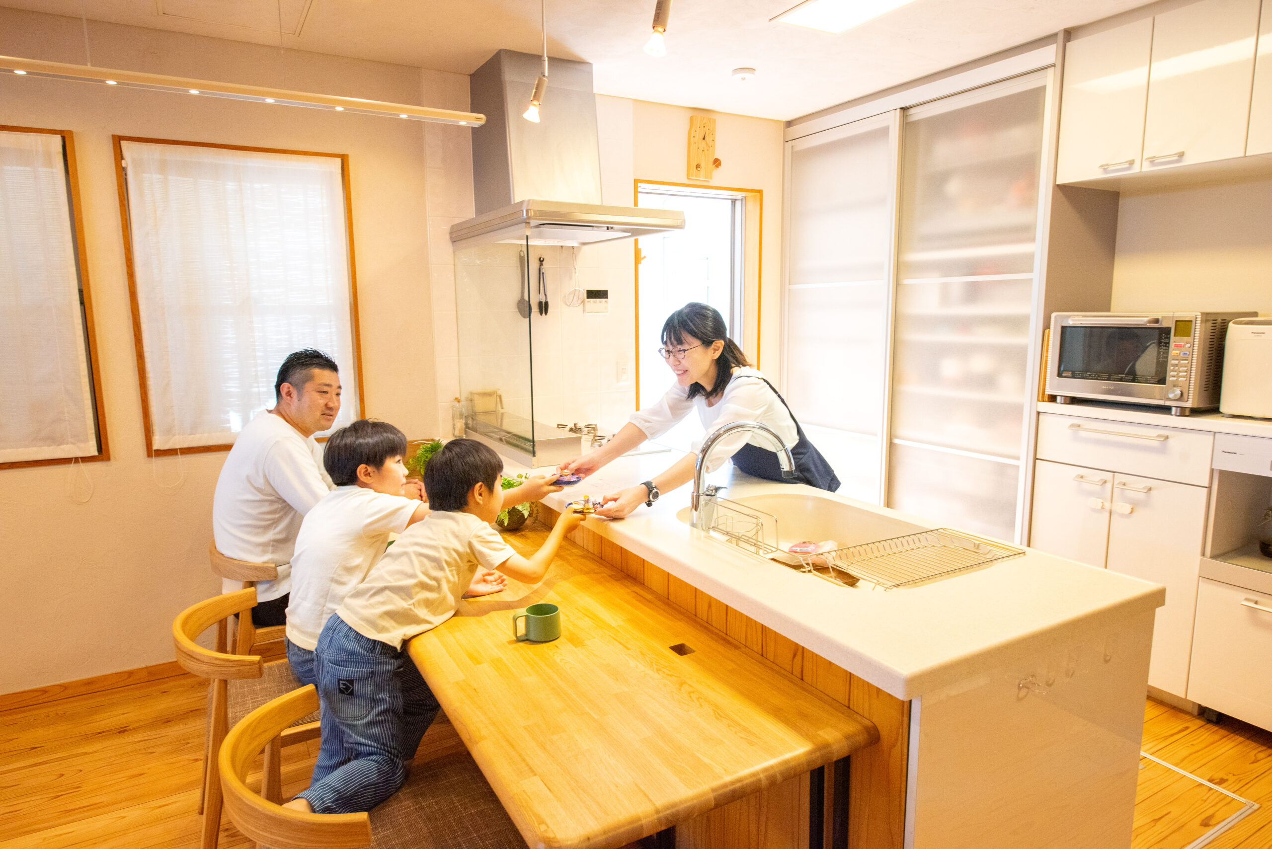 笑顔が行き交うキッチン。家族の会話が弾むカウンターのある家