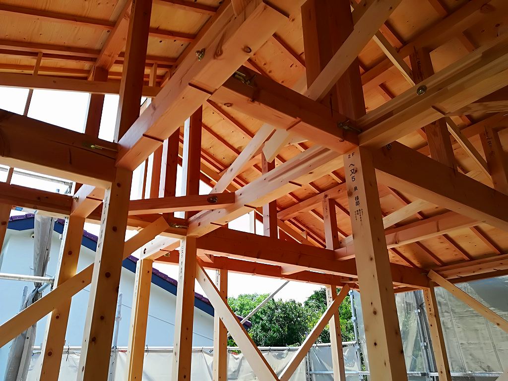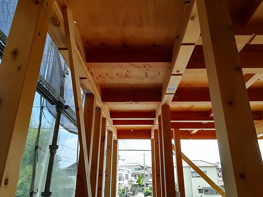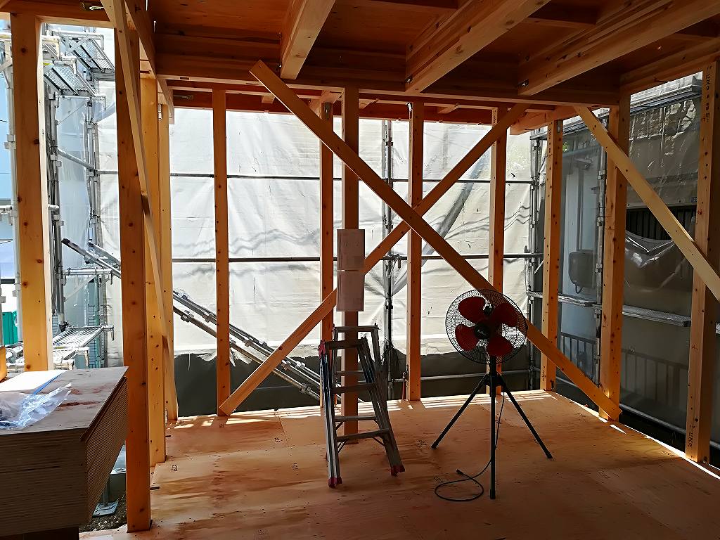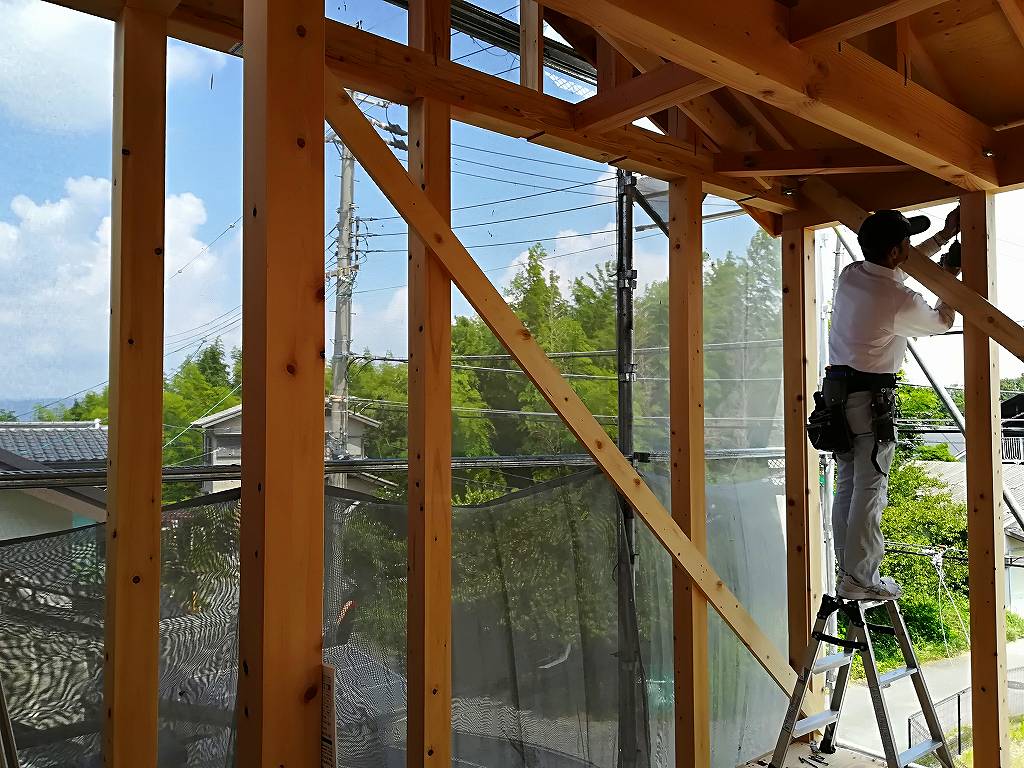 昨日に上棟した枚方市の藤阪東町二丁目の家では、早速本日より大工工事がスタートです。