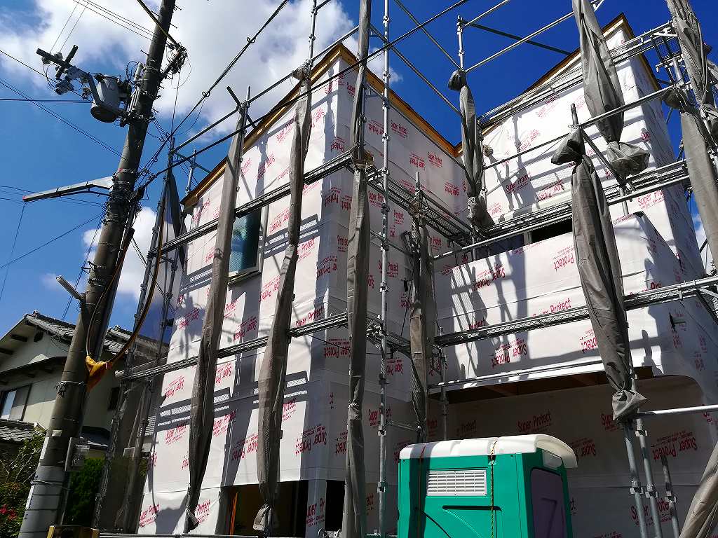 外壁サイディング工事真っ最中なのは、枚方市藤阪東町四丁目の家。