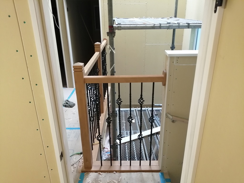 HOME > 現場ブログ > 吹抜けに素敵なロートアイアン手摺が完成!