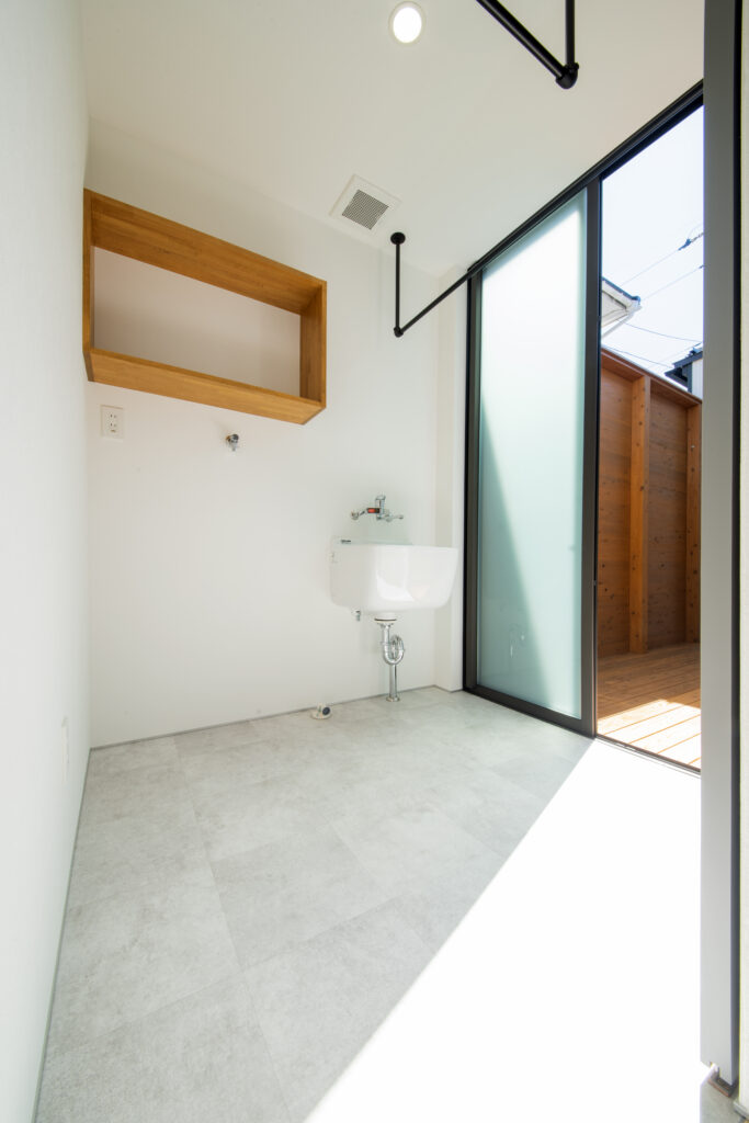 ペットの散歩帰りに直接洗える玄関横の洗面台や土間収納は、忙しい共働き世帯にも嬉しいポイント。