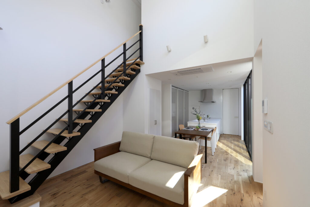 構造美を活かしたスケルトン階段や梁見せデザインとの相性も抜群です。