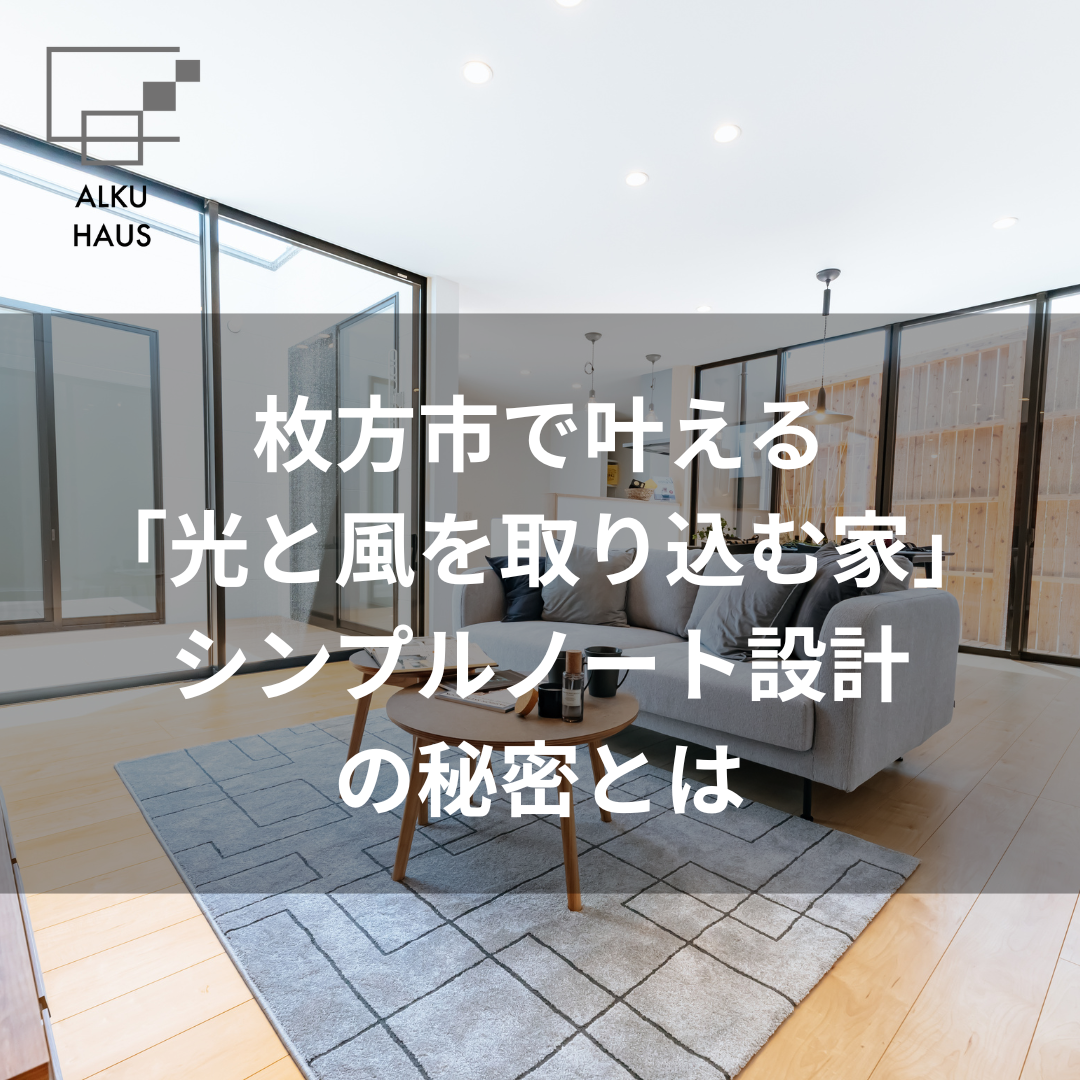 本記事では、**「シンプルノート」の家づくり哲学を取り入れながら、枚方市という地域特性を活かした“光と風を取り込む設計”**のポイントを、アルクハウスの視点で詳しくご紹介します。