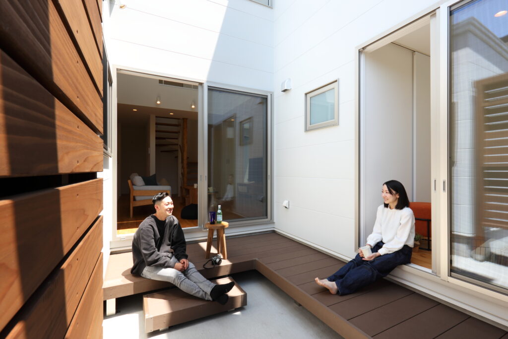 家の中心に中庭を設けることで、外からの視線を遮りつつ、家全体に柔らかな光を届けることができます。