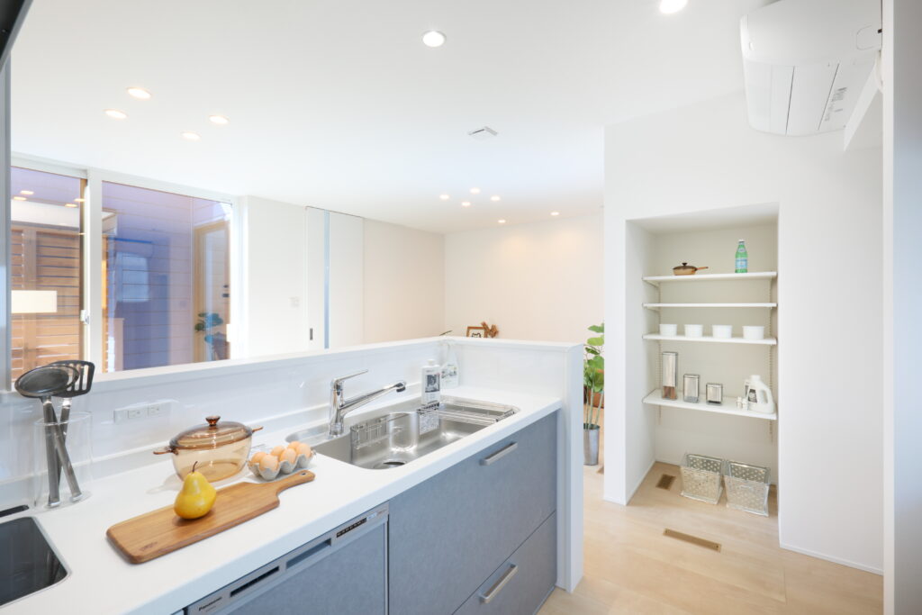 シンプルノートの家では、廊下を極力つくらず、動線の途中に収納を配置することで「片づけやすい=散らからない」を実現しています。