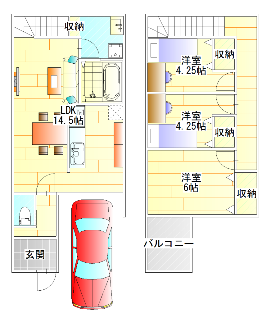 自由設計の木造住宅2階建て 新築一戸建て 3LDKプラン