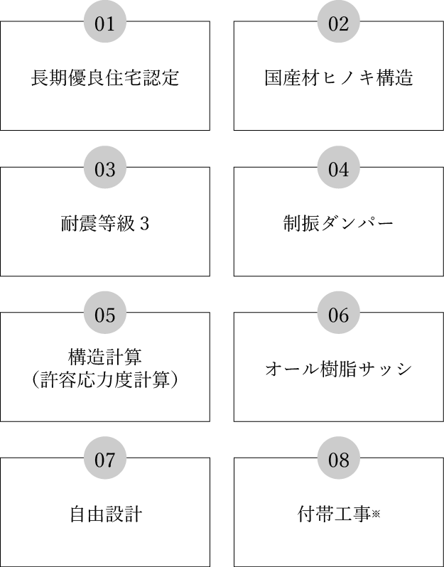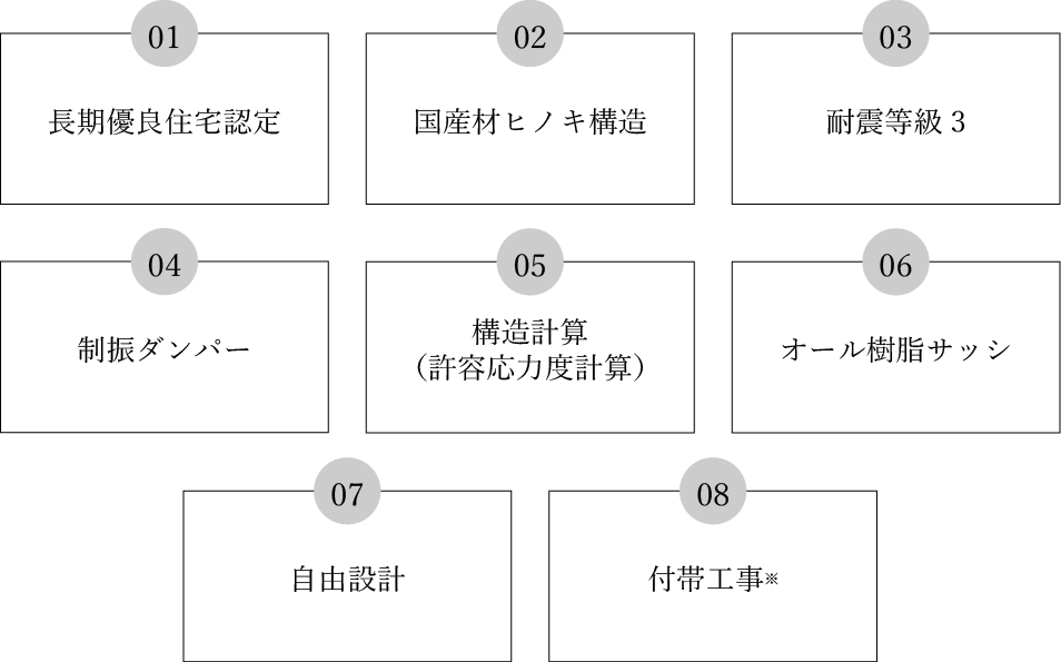 建物付帯工事を含んだ 8もの仕様がすべて標準装備!