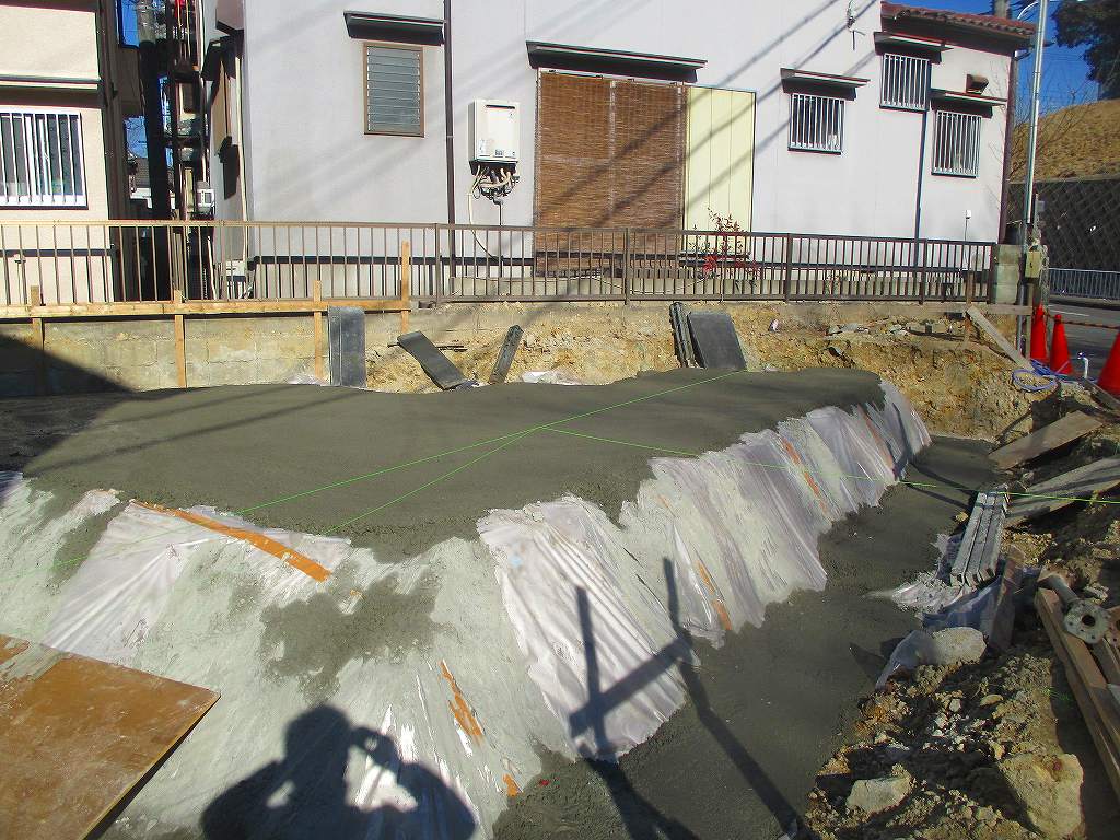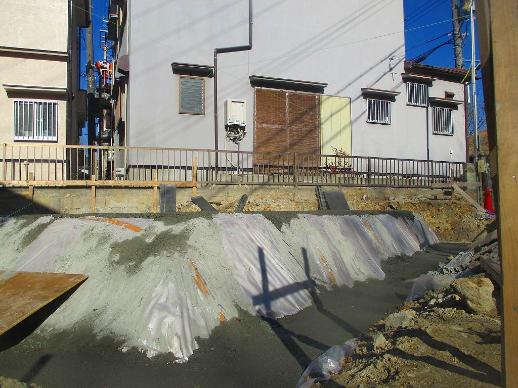 枚方市藤阪東町4丁目で注文住宅の新築一戸建ての工事がはじまったYO様邸では、基礎工事が始まりました。