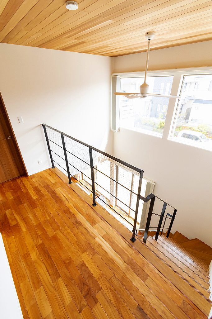 2階の廊下は階段や吹抜けとの関係を考えてあえて広くしました。