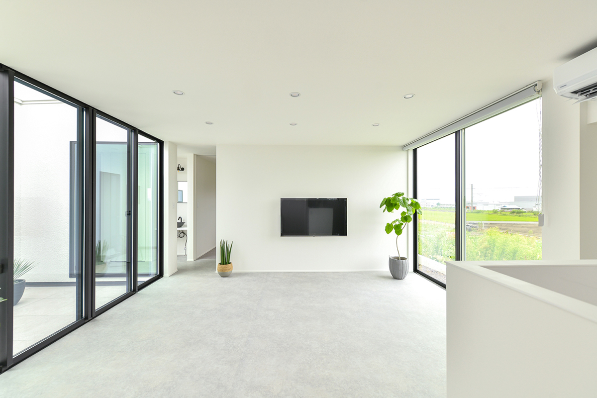 白と自然がつながる、平屋のシンプルな家